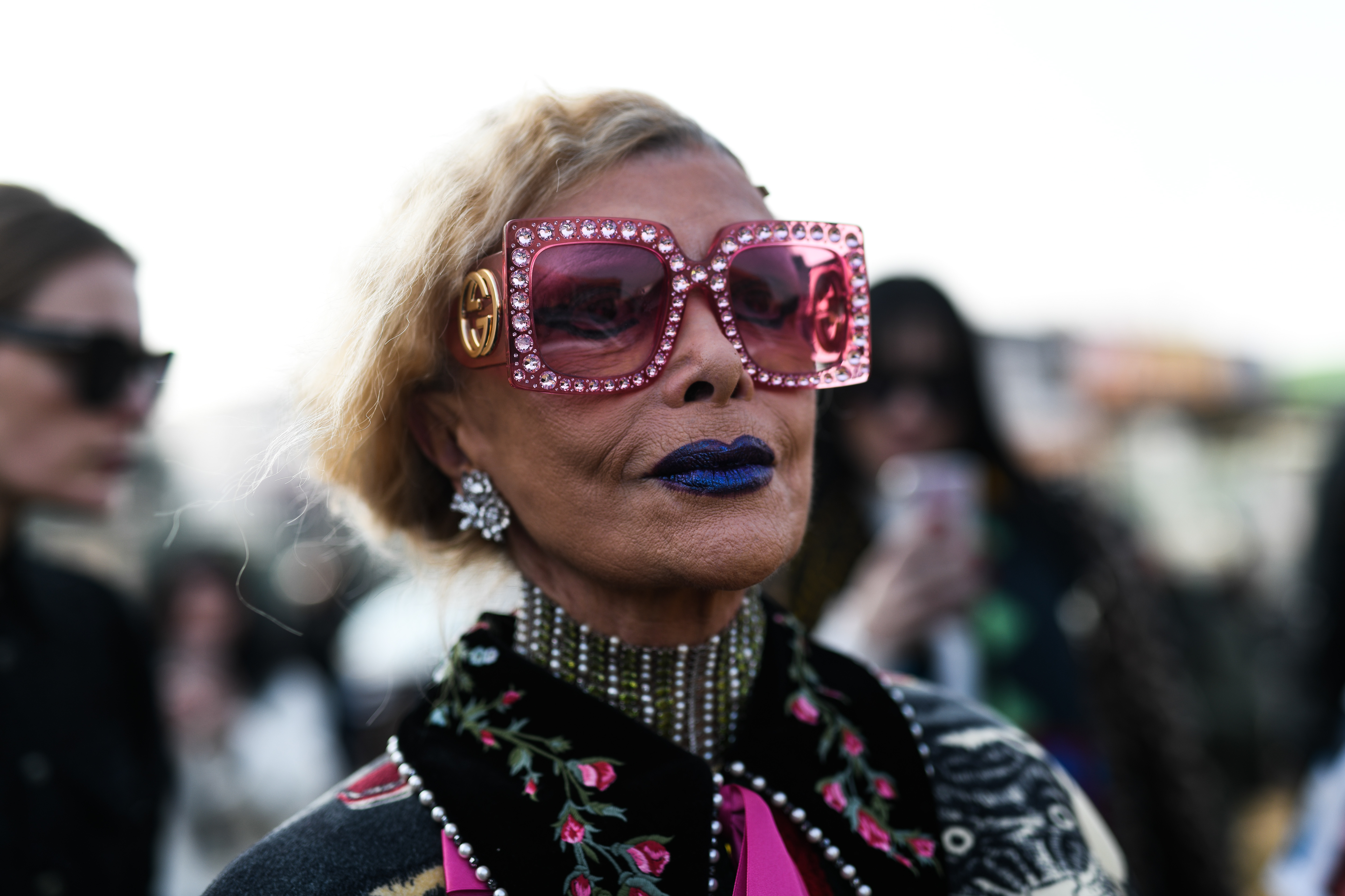 A guest is seen wearing bedazzled sunglasses during Milan Fashion Week.