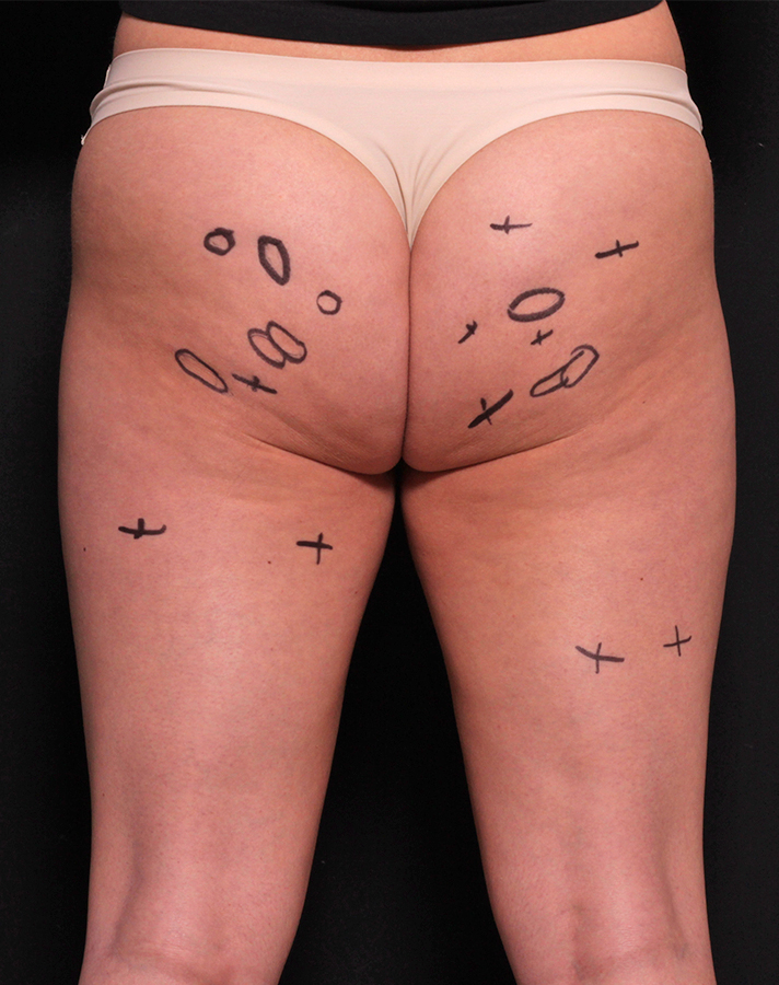 It also explains why all of those “magical” drugstore creams and serums are complete crap, because, as Brauer explains, genetic cellulite isn’t a superficial surface issue—it’s caused by fat pushing through the tight, fibrous bands beneath your skin to create a puckered, dimpled effect. So Cellfina works by “releasing” the bands (like when you loosen a tight rubber band) through small injections with a needle-size device. Once the fibrous bands are released, the skin bounces back and, ideally, smooths itself out for at least three years. Sounds easy, right?