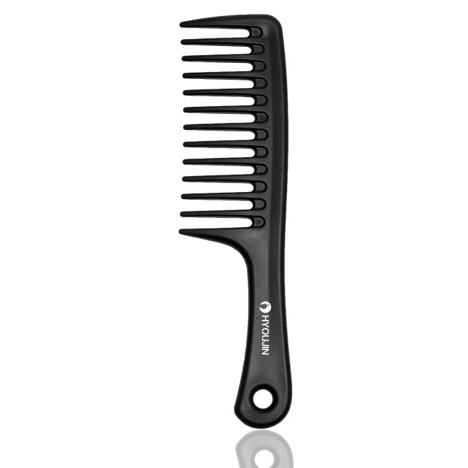 The wide-tooth comb is a must for detangling wet hair. Since lots of hair can slip through the teeth, that means less breakage for you. Wide-tooth combs are also one of the best tools for thick curly hair, since it can detangle your curls without messing with their shape, and it’s the best weapon against hair poof-age.