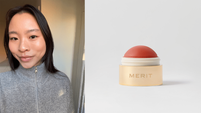 “Merit just knows how to make a good, convenient makeup product. Its Flush Balm blushes are truly elite in that they create a natural pop of color that’s not too much, and not too little—the Goldilocks of blushes if you will! In the photo above, I only applied the shade Cheeky to my right side (left in the photo), so you can see what one side looks like with blush and what one side looks like without. It’s fairly long-lasting, although since I have oily skin I do find that I need to touch up mid-day.” — Gina Vaynshteyn, Senior Commerce Director
