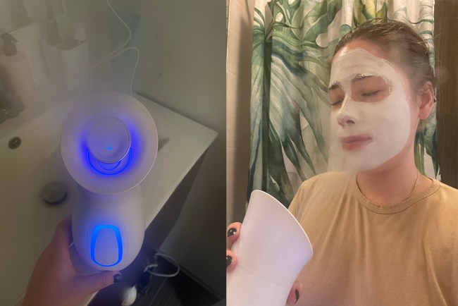 I like to use the facial steamer on bare skin first to open up my pores before going in with my face mask. I’ll then let the stream engulf my skin with the mask on for a couple of minutes before letting the product work its magic—and I really feel like this has made a difference in how my skin looks and feels.