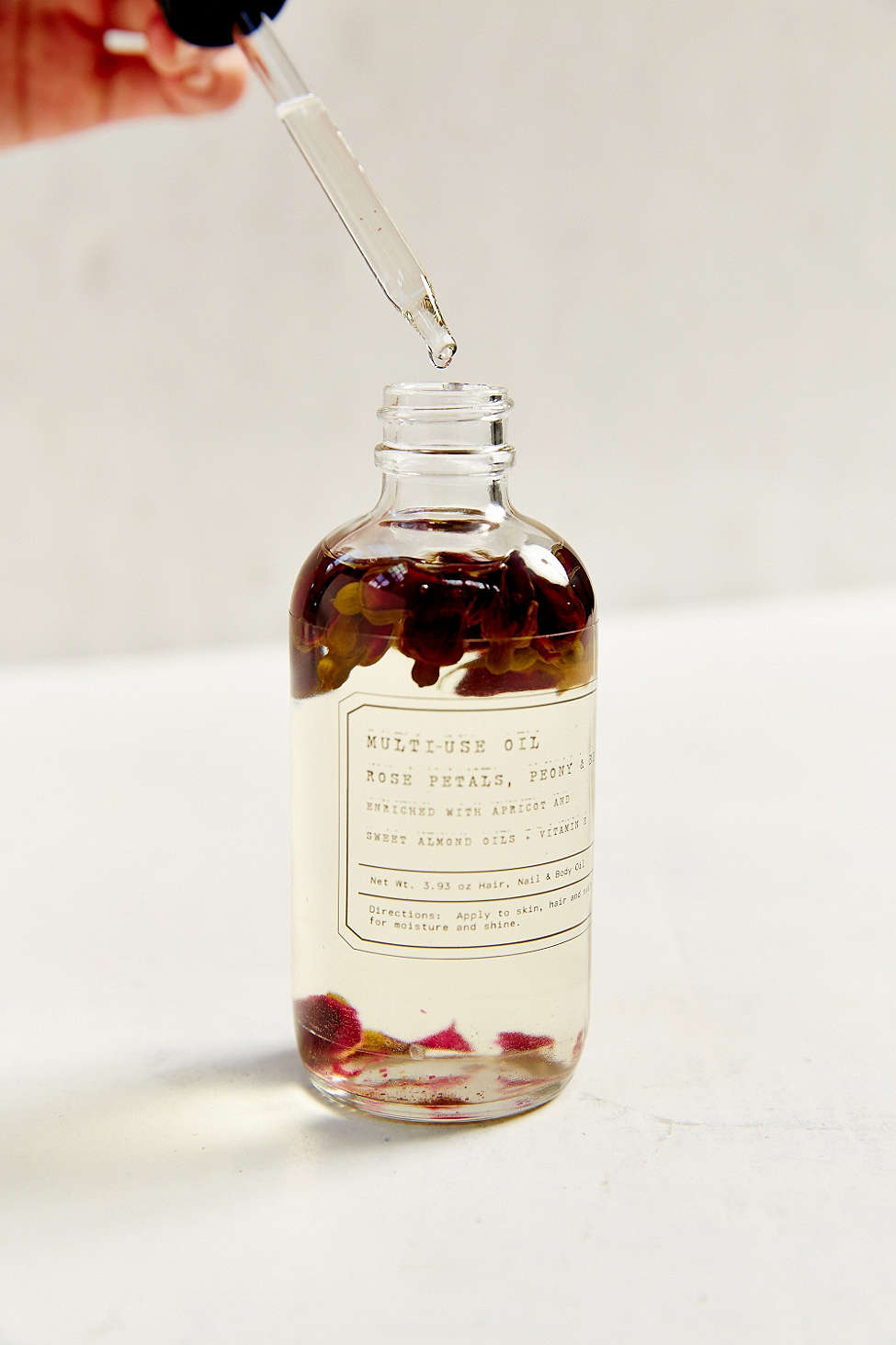 Case in point: on a casual stroll through Urban Outfitters‘ beauty section, I happened upon this nondescript clear bottle filled with a clear oil with what appeared to be floating bits of potpourri inside. Its name was even more nondescript: Rosebud Multi-use Oil. Upon initial sight, it looks like a DIY that scored the jackpot in terms of mainstream distributors. I squirted a dropper-ful of the stuff onto my forearm and rubbed it in.
