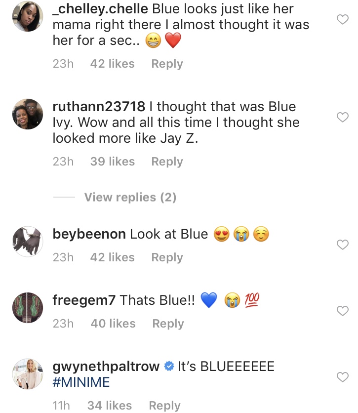 As cute as the moment was, it wasn’t Beyoncé’s dance moves that caught the attention of fans—it was her uncanny resemblance to her 6-year-old daughter, Blue Ivy. It didn’t take long for Lawson’s comments to flood with fans who called Beyoncé “Blue Ivy’s twin” and proclaimed her as her doppelgänger. Even celebrities, like Kelly Rowland and Gwyneth Paltrow, saw the resemblance. “Hey BLUE! BLUE!!” Rowland commented. “It’s BLUEEEEEE #MINIME,” Paltrow added. WNBA player Candace Parker commented, “If this isn’t Blue…..omg!!!!!”