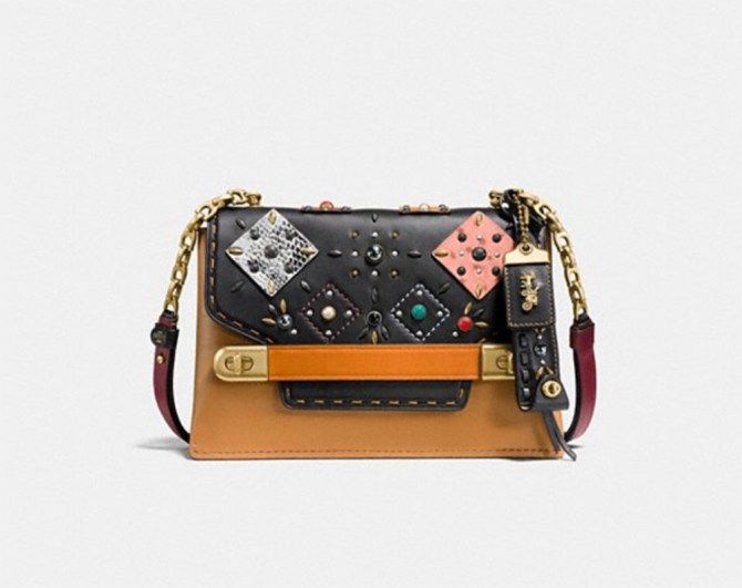 Swagger Chain Crossbody with Patchwork Prairie Rivets, $595; at Coach