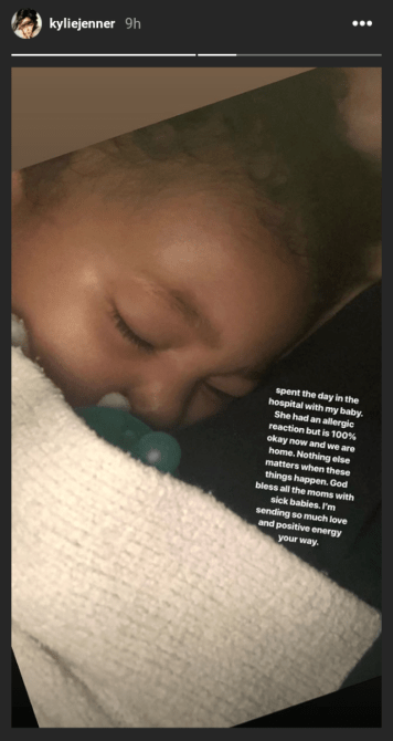 Jenner did not share details about what Stormi’s allergic reaction was caused by or what the prognosis is. All we know right now is that Stormi is safe, sound and out of the woods for the time being. It’s also unknown how long she was in the hospital and which family members in addition to Jenner were there to watch over her.