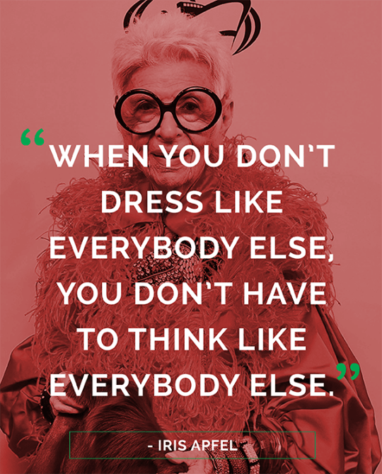 56. “When you don’t dress like everybody else, you don’t have to think like everybody else.” – Iris Apfel