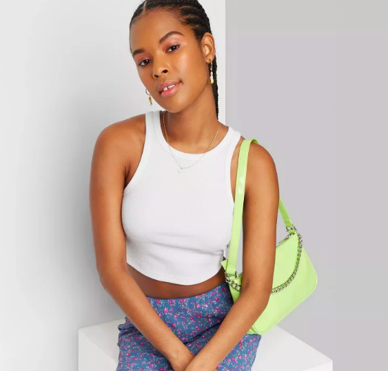 I love that these white denim shorts from Target are high-rise, so I can wear them with different lengths of crop tops. Keep in mind these shorts have pretty much no stretch, so you might want to size up if you want a more comfortable fit. I’m wearing these in size 10 and I have a 29-inch waist and 42-inch hips. The difference in my waist and hip size usually makes it impossible for me to buy pants but the measurements on this Target listing were super accurate.