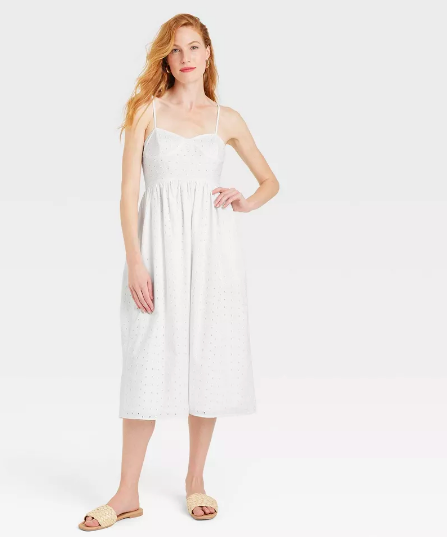 I love a crisp white dress for summer, and you can pair this one with slides, sneakers or even flip-flops if you’re heading out for quick neighborhood errands. Add some gold jewelry after 5 pm, and you’ve got yourself a chic evening look.