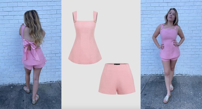 But what I liked even more was this polished pink set with an adorable bow in the back. An outfit like this is typically out of my comfort range, but I honestly was surprised by how confident it made me feel as soon as I slipped into the two pieces. The shorts are incredibly comfortable, and I could totally see them working with other pieces in the collection (or even shirts I already own).