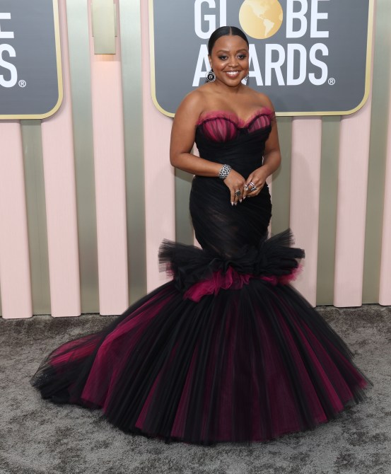 Quinta Brunson wears Carolina Herrera.