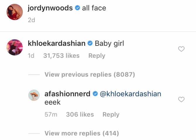 The 21-year-old model took to Instagram on Monday, February 19, to share a photo of her profile with the caption, “all face.” The photo was posted two days after Woods and Thompson’s hook-up, which Kardashian didn’t learn of until hours after she posted this sweet comment on Woods’s selfie: “Baby girl.”