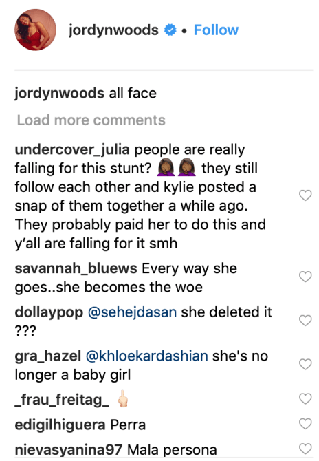 As for what fans think of the Woods-Thompson scandal, many suspect it could be publicity stunt. One Instagram user wrote, “people are really falling for this stunt? 🤦🏾♀️🤦🏾♀️ they still follow each other and kylie posted a snap of them together a while ago. They probably paid her to do this and y’all are falling for it smh” That’s a fair assumption, considering that Woods and the Kardashian-Jenners, including her best friend Kylie Jenner, still follow each other on Instagram.