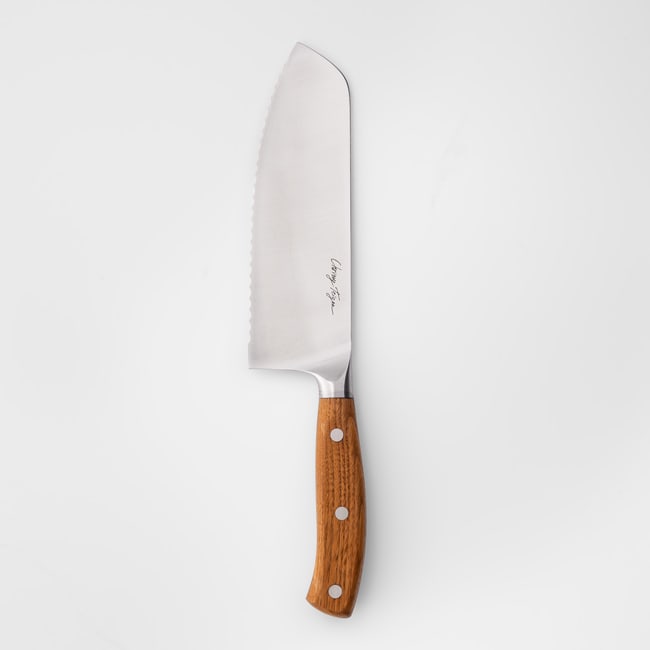 “It was the first thing we created,” she said in the same press release. “I have so many knives in my own kitchen, but always found myself gravitating towards my 7-inch chef’s and serrated knives. I always wished they would morph into one, so we did just that. It slices juicy tomatoes, steak and rustic loaves of bread perfectly. I truly love it.”