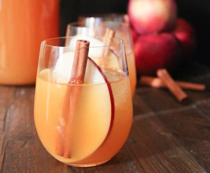 This bourbon spiced cider punch is a crowd-pleaser, and all you need for a double batch of the recipe (about 16 servings) is a 750 mL bottle of inexpensive bourbon ($19), a half gallon of apple cider ($3), two lemons ($1) and two cans of ginger beer ($2). Float a sliced apple and some cinnamon sticks in the punch for extra pizzazz.