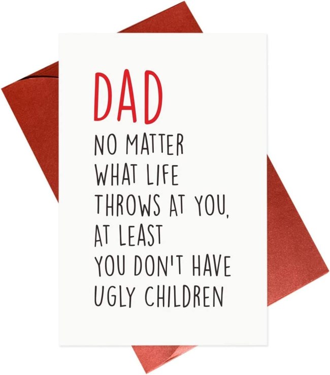 After all of these years of hearing dad jokes, its time you get in on the action with a hilarious card. When the laughter dies down, the tears will form thanks to the emotional message you wrote on the blank inside page.