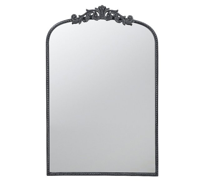 The Valerie Baroque-Inspired Mirror from QVC is a stunning spin on this viral mirror style. It features a modern arched silhouette with a baroque molding detail at the top for added interest and comes in a brassy gold or antique black finish. With the exception of the side details, the mirror is almost an exact replica of the three-foot Anthro version, it’s just a few inches shorter and a tad wider.