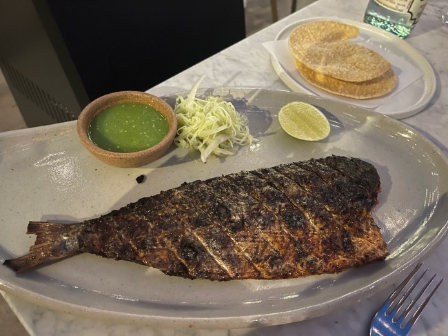 Just reading the drink menu—led by beverage manager Tianna Brammer—will make you feel like you’re on vacation. I ordered the El Pico Rico, a cocktail made from Código Blanco tequila, contreau, honeydew juice, and a subtle kick of spice from the Anchos Reyes Verde. We also ordered a bottle of the Dominio de las Abejas, an organic red wine that comes from vineyards in Baja California, Mexico. The name literally translates to: “Domain of the Bees,” which is a testament to the vineyard’s commitment to preserving biodiversity. The wine tasted just as clean and crisp as that sounds. We savored every single sip.