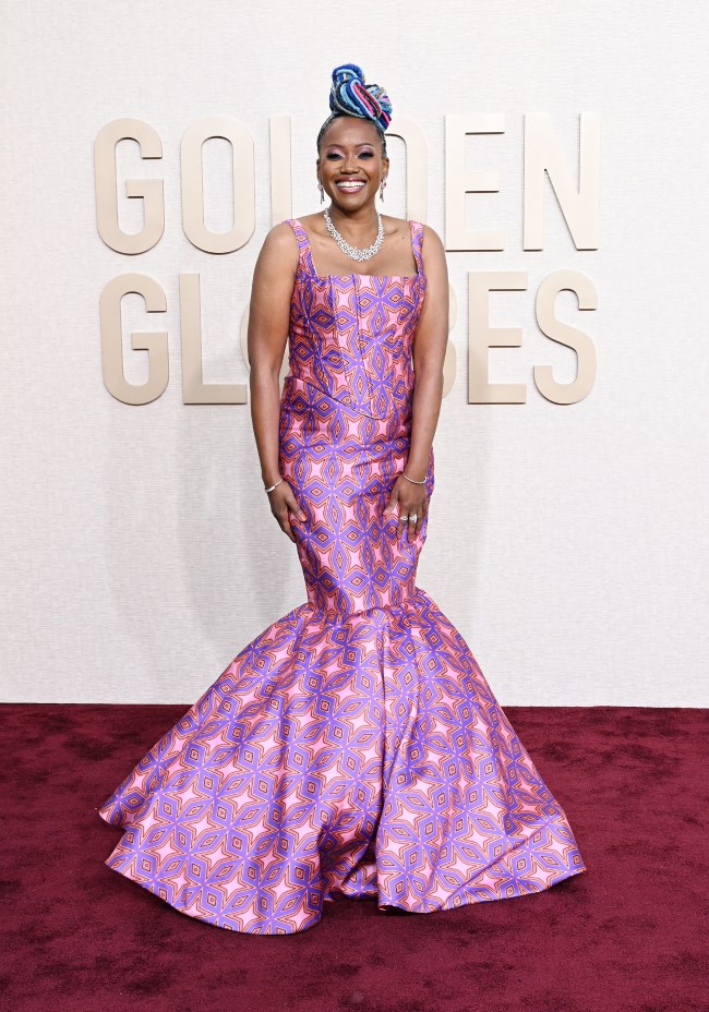 Nominee Da’Vine Joy Randolph matches the red carpet with a sumptuous, on-trend peplum gown by Rodarte. She’s nominated for Best Performance by a Female Actor in a Supporting Role in any Motion Picture for her work in “The Holdovers.”