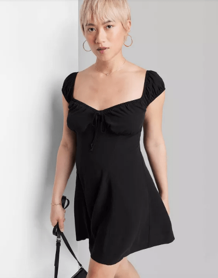 BRB, we’re drooling over the adorable neckline of this mini dress. The pink print is summer ready, while the black dress perfectly transitions into fall when paired with tall cowboy or riding boots. It reminds us of UO’s Kimchi Blue Cap Sleeve Mini Dress, but the Target one looks more casual and comes in brighter summer-ready colors.